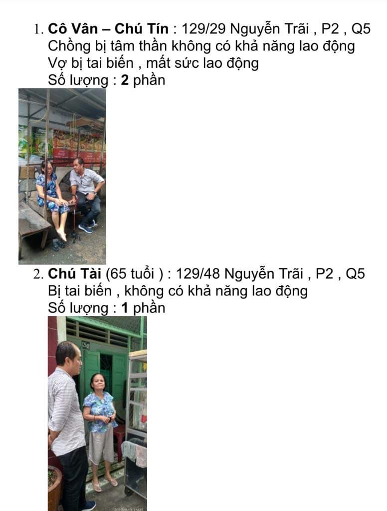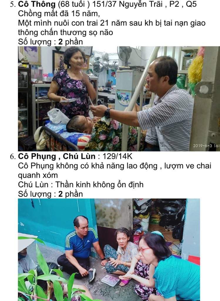 Xin nói thêm là những hoàn cảnh này từ lâu đã được anh tổ trưởng tốt bụng vận động giúp đỡ các bữa ăn vào các ngày thứ Hai, Tư và Sáu.