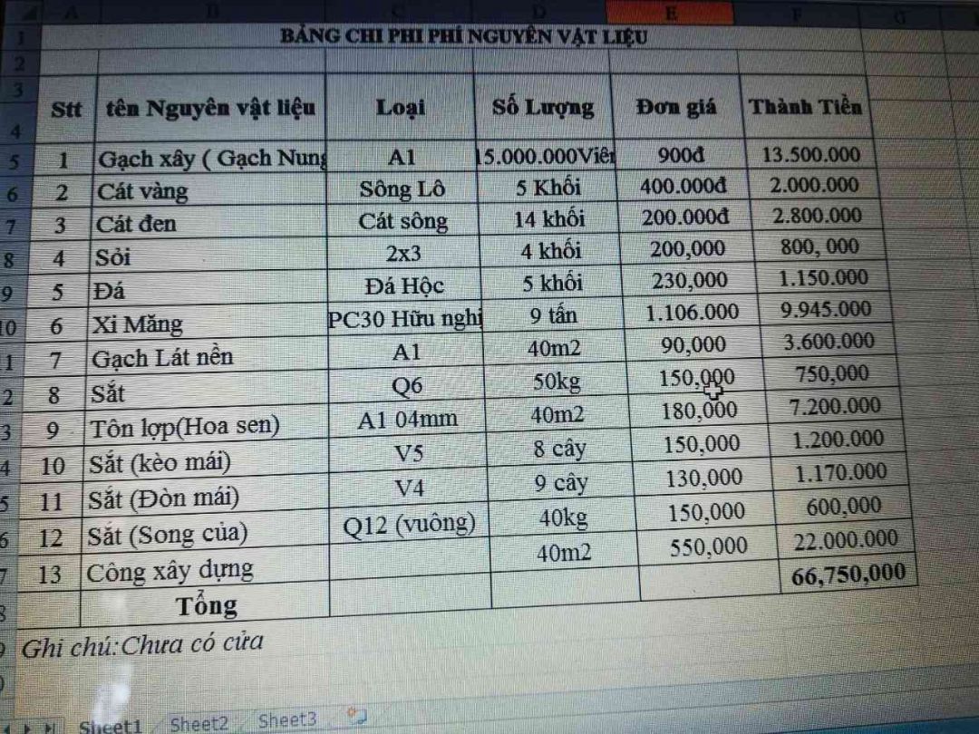 Đây là dự toán xây dựng do đoàn thanh niên xã lập.