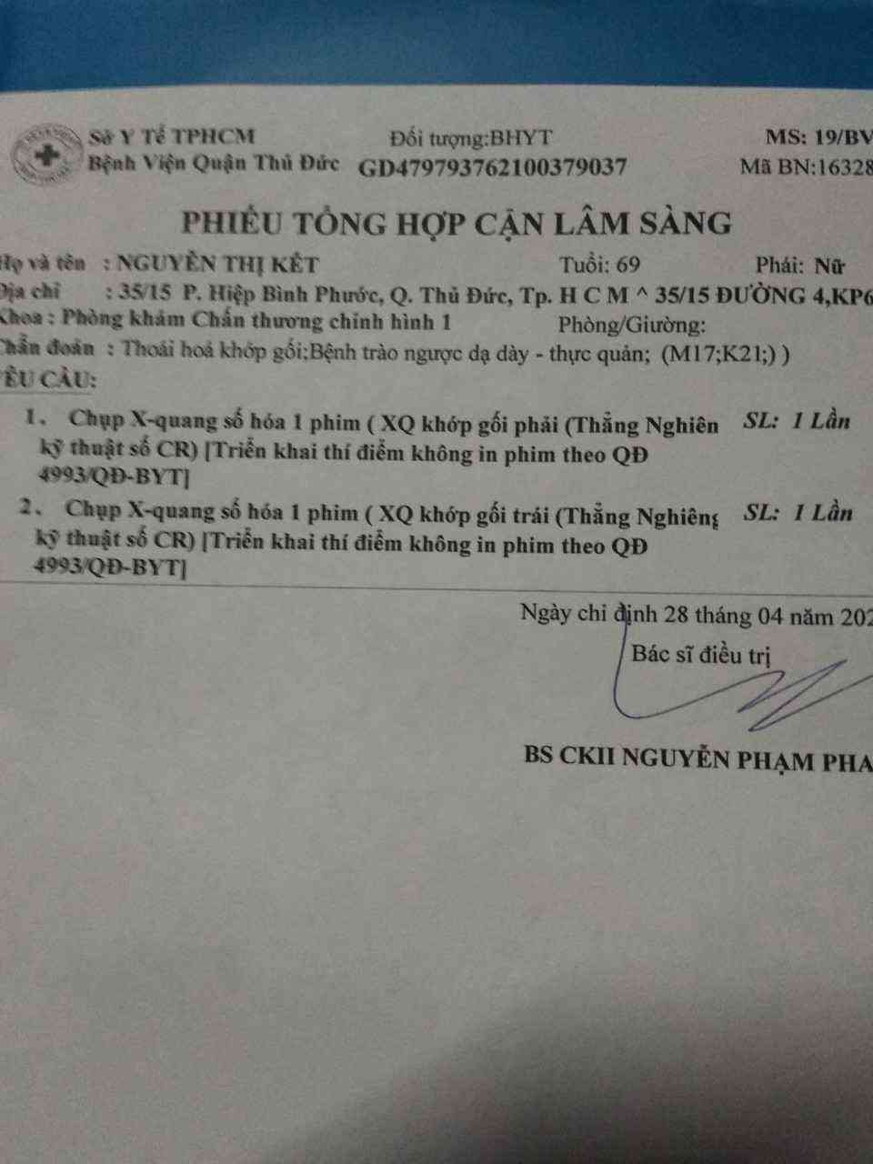 Hôm nay TQH có đến thăm gia đình Ông Bà Tư . Mấy nay Bà Tư bị bệnh khớp  , phải vào bệnh viện khám và chụp Xquang  .