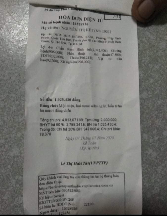 Qua kết quả khám gần đây Bác Sĩ  bảo Bà phải mổ , chi phí cho đợt mổ này là  40 triệu ( chưa tính bảo hiểm ) . Ông bà không có tiền nên chưa dám quyết định.