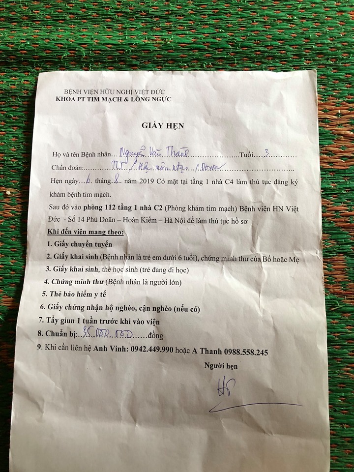 Với kinh phí phẫu thuật tim và hậu môn là số tiền quá lớn 125 triêu ( trong đó viettell chiêm hoá đã nhận tài trợ mổ tim trị giá 63 triệu ) vậy số tiền 62 triệu lo phẫu thuật và hậu phẫu cho bé rất mong các MtQ các nhà Hảo tâm cùng cộng đồng màng chung tay chia sẻ để ngày 25-7-2019 bé Thành được phẫu thuật hậu môn trước theo lịch hẹn của bác sĩ bệnh viện Nhi TW