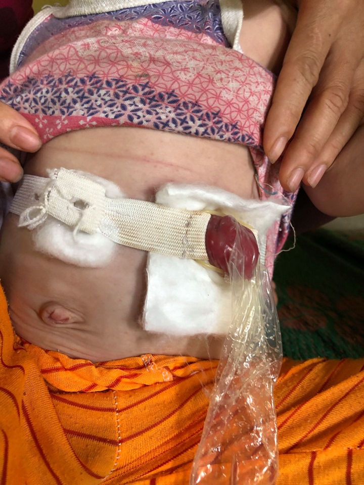 Bé được chỉ định phẫu thuật hậu môn năm 1 tuổi nhưng do gia đình không có lo đủ viện phi nên suốt 3 năm nay bé luôn mang trên mình 1 túi đựng chất thải qua hậu môn nhân tạo.