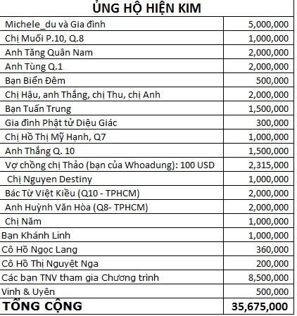- Michele_du và Gia đình ủng hộ: 5,000,000đ.