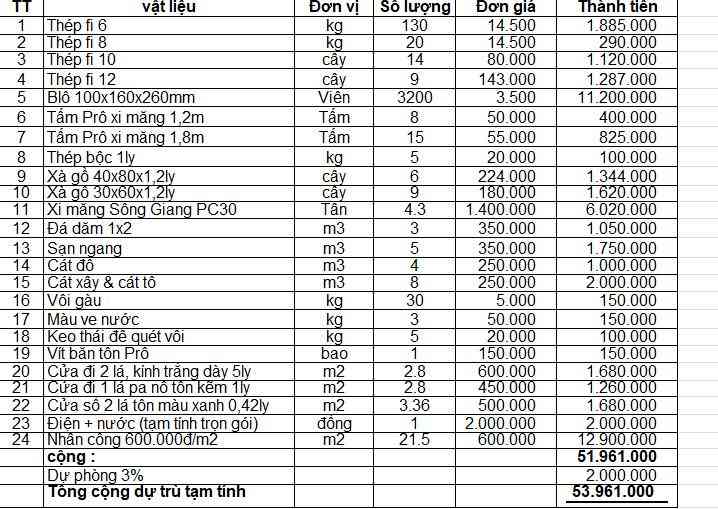 Thuyết minh làm nhà như sau: