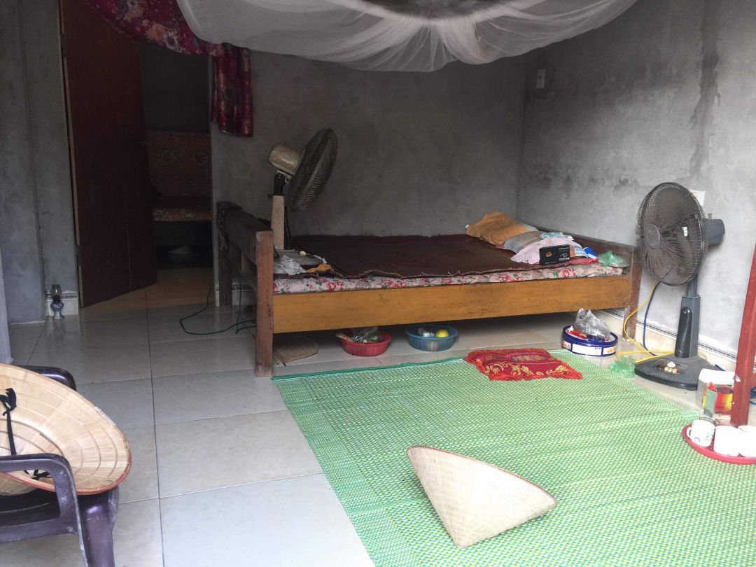 Bà bé lấy chồng bị tâm thần sau đó bỏ chồng có sinh được 1 người con trai tên Hà năm nay 37 tuổi nhưng cũng bị bệnh tâm thần cứ đi lang thang khắp làng không biết làm ăn gì ( trường hợp bà Bé sau này mấ đi không biết gửi cậu ấy vào đâu). Ngày trước bà Bé được làng cho làm công việc gom rác  nhưng 2 năm nay bà bị bệnh tiểu đường nặng không làm được nữa mà toàn phải đi viện. Hoàn cảnh gia đình có 2 mẹ con không làm được gì mà chỉ nhờ bà con làng xóm giúp đỡ cho bữa no bữa đói. Trước đây có cái nhà ngói cũ bị bão đánh sập và đã được bà con hàng xóm và chính quyền xây lại cho 1 căn nhà nhỏ đổ mái bằng.  nhưng nước ăn thì cả làng đã dùng nước sạch riêng nhà bà Bé vẫn dùng nước giếng khơi mà nước giếng khơi ở vùng ven biển bị ngập mặn rất bẩn ăn vào có khi thêm bệnh.