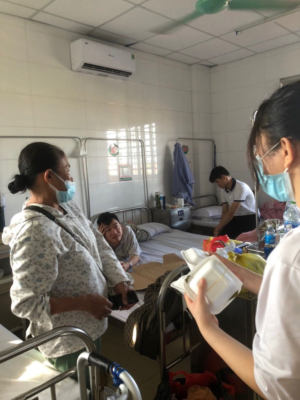 280 suất xôi được nhóm HT cùng đoàn thanh niên BV phục hồi chức năng trao đến bệnh nhân đang điều trị tại bv
