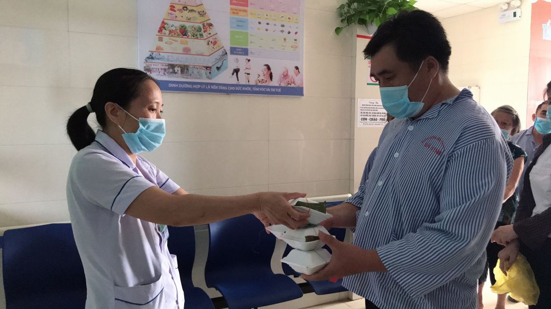 Do thời tiết hà tĩnh lạnh nên các bạn TNV đã mang đến từng phòng bệnh trao cho bệnh nhận