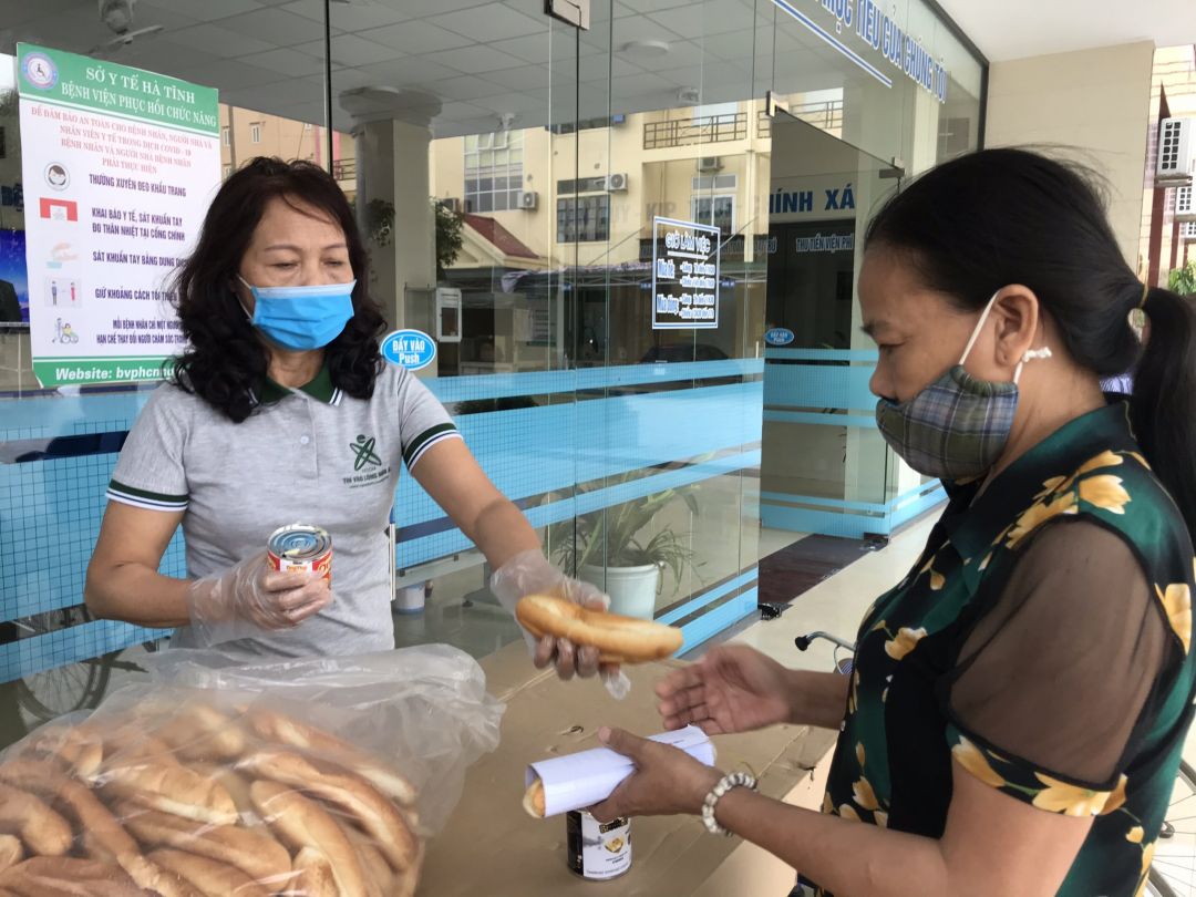 275 bánh mỳ nhân thịt được các bạn TNV trao cho bệnh nhân đang điều trị tại BV PHỤC HỒI CHỨC NĂNG