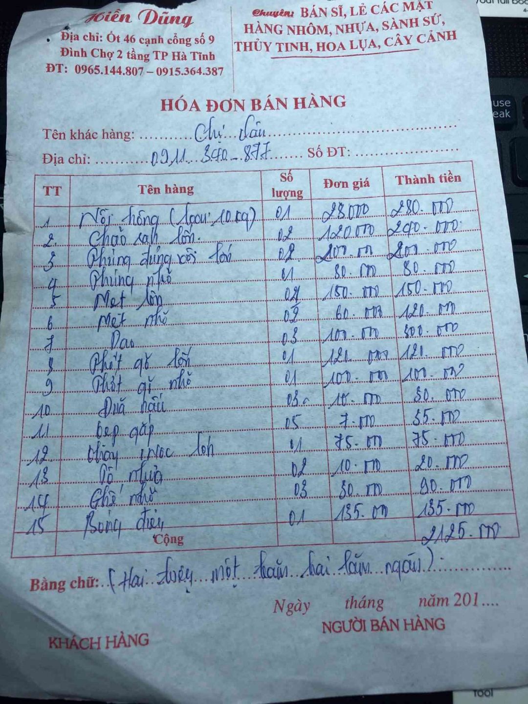 14. tô nhựa; 2 cái x 10.000 = 20.000đ