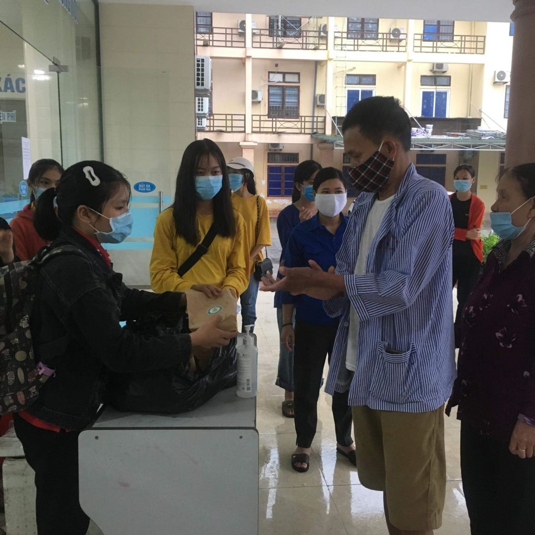 275 bánh mỳ nhân thịt được các bạn TNV trao cho bệnh nhân đang điều trị tại BV PHỤC HỒI CHỨC NĂNG