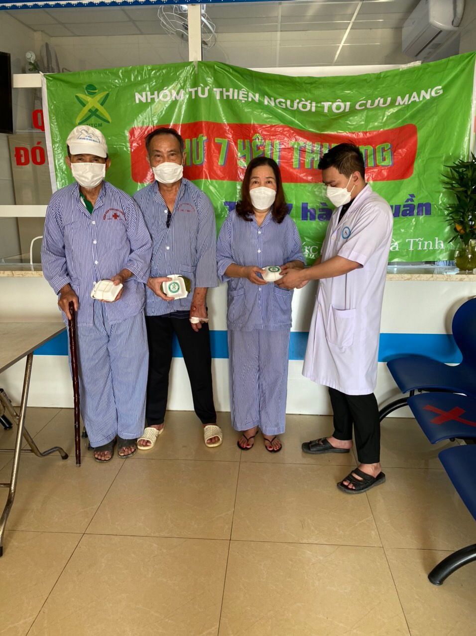 Nhờ sự hỗ trợ từ Đoàn thanh niên, phòng công tác xã hội Bệnh viện nên việc phát ở các phòng, khoa cho bệnh nhân phía bệnh viện đảm nhiệm hoàn tất cho nhóm