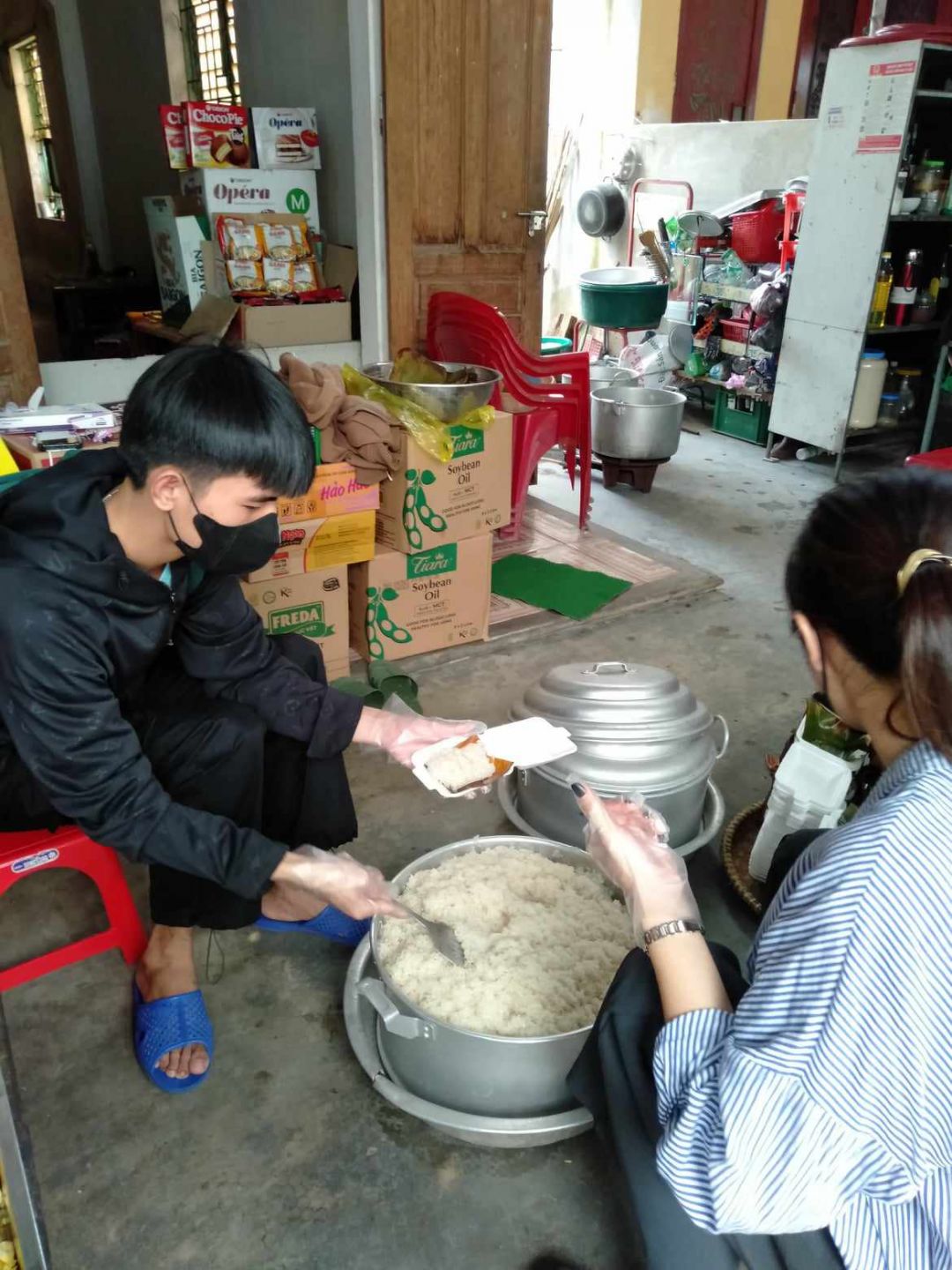 Cảm ơn các bạn TNV đã cùng với nhóm trao yêu thương trao những bát cháo thơm phức tới mọi người.