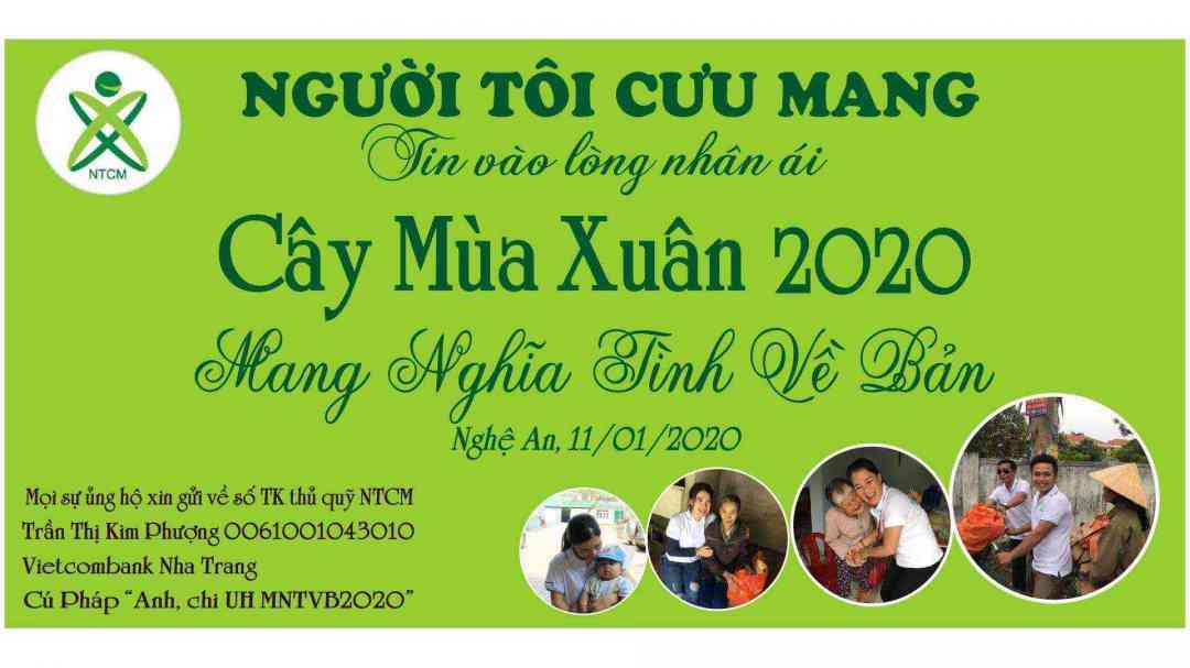 . Tụi con xin được phép kêu gọi chương trình trong khoảng 20 ngày . Vì chương trình tết nên giá cả hàng hoá sẽ lên rất nhiều trong dịp cận tết . Nên sau 20 ngày kêu gọi kinh phí kính mong ban quản trị tạo điều kiện cho NTCM tại Nghệ An nhận tạm ứng kinh phí để mua hàng hoá tránh tình trạng giá hàng hoá leo thang sẽ làm ảnh hưởng rất lớn đến chương trình . Kính mong sự chung tay của các mạnh thường quân . Và tụi con cũng xin chân thành cảm ơn sự ủng hộ của bác TLC người đầu tiên ủng hộ cho chương trình Cây Mùa Xuân 2020 - Mang Nghĩa Tĩnh Về Bản năm nay . Tụi con xin cảm ơn ạ