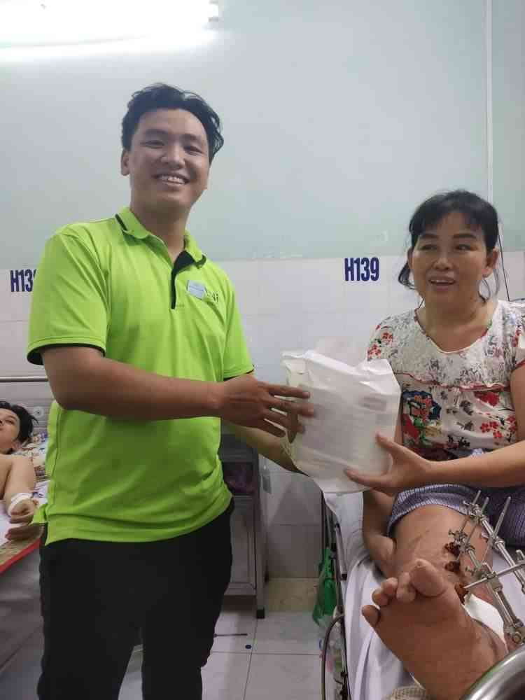 Mai Trâm thấy Hoàn cảnh của chị Duyên còn khó khăn về tiền đóng viện phí cho bệnh viện nên Mai Trâm đề nghị xuất quỹ CMKTX 2 triệu  đóng viện phí để chị an tâm tiếp tục điều trị bệnh cái chân đang bị nhiễm trùng.Hiện tại chị Duyên đang nằm điều trị phòng 56 khoa ngoại chấn thương chỉnh hình.