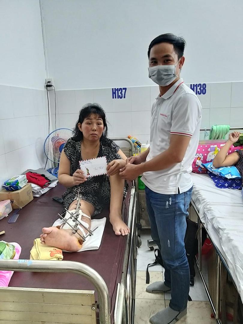 Được tin chị Duyên vào bệnh viện Phục Hồi Chức Năng Q8 để khám vì sau mấy tháng về quê chăm sóc chân không kỹ nên thịt bị hoại tử, khiến vết thương mang mủ. Sau khi nhập viện bác sỹ yêu cầu mổ gấp và yêu cầu đóng 5 triệu tạm ứng để tiến hành phẫu thuật, chị Duyên đã nhờ con gái liên hệ với chị Maitramtg để giúp đỡ. Được tin từ chị Maitramtg nhưng 2 ngày sau DucTai mới sắp xếp được thời gian để vào thăm chị!