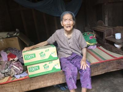 Chào cả nhà!! Hôm nay ( ngày 12/03). Út Lài đã đến thăm và trao cho hoàn cảnh bà Năm 2 thùng sữa đậu nành fami. Được em Quốc Hương chuyển về.