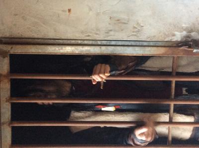 vì bệnh tình con trai quá nặng nên cụ fai nhốt anh trong một cái chuồng. mọi sinh hoạt ăn uống vệ sinh đều trong đó và hàng ngày cụ đưa cơm qua cánh cửa sắt cho con, tất cả từ ăn uống đến vệ sinh cá nhân anh không tự chủ được nên cụ đành phải làm cho con.