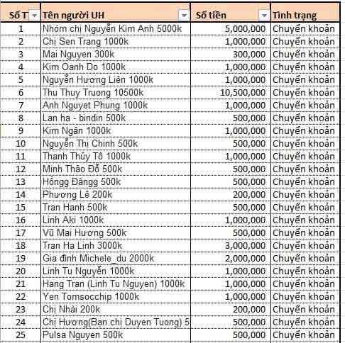 TÊN NGƯỜI ỦNG HỘ   SỐ TIỀN