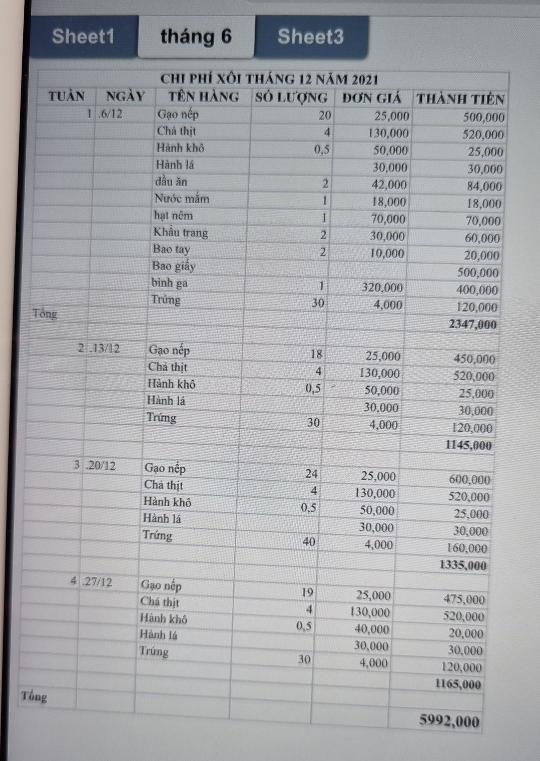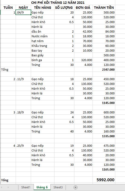 Kiều Oanh xin cập nhật chi phí Tháng 12
