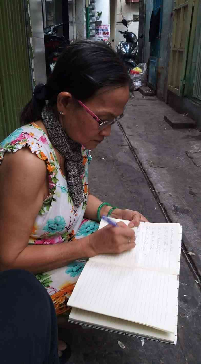 Khi DucTai đến thì cô đang chăm mẹ! Ngồi nói chuyện với cô mà DucTai cảm thấy khâm phục nghị lực của cô ấy, cô không lập gia đình, bị " U Bứu ác tính Thanh Quản " hiện giờ cô đang thở bằng ống thở đặt trong cổ, mỗi tháng phải mua hơn 1 triều tiền thuốc để uống.