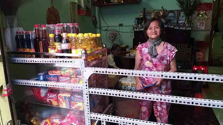 Mai Trâm hỏi về cuộc sống hiện tại mua bán như thế nào thì chị nói hiện tại chị bán chạy nhất mặt hàng mì Hảo Hảo và xà bông gội đầu dầu ăn thì một ngày 1.2 chai