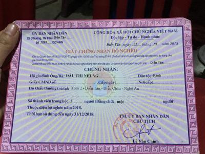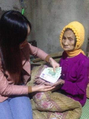 Cụ Đậu Thị Nhung sinh năm 1930, nơi ở xóm 2, xã Diễn Tân, Huyện Diễn Châu, Tỉnh Nghệ An. Cuộc sống của cụ rất khó khăn là hộ nghèo bền vững của xã . Ai thấy hoàn cảnh cụ hẳn sẽ xót xa, cái tuổi đáng lẽ được hưởng trọn tình thương con cháu, bao người chăm sóc lúc về già thì cụ sống lủi thủi trong căn nhà đã cũ, mùa mưa thì dột, trong nhà không có gì đáng giá. Cụ không con cái, không anh em họ hàng ở gần nhà. Tuổi đã cao nên cụ ốm đau thường xuyên. Chỉ sống bằng tiền trợ cấp người cao tuổi Lúc các TV Nghệ An tới thăm thị cụ đang ốm nặng và không dậy được và có bà em ở Nghĩa Đàn cũng ngoài 80 tuổi tới chăm sóc giúp đỡ cụ. TV Nghệ An ghé hỏi thăm làng xóm tình hình của cụ được biết là cụ được mọi người rất yêu quý và cụ một thân một mình ai cũng thương và mọi người thỉnh thoảng ghé thăm cụ. Hoàn cảnh cụ rất là khó khăn Alexander xin đề xuất CMTX 6 tháng cụ từ Tháng 2-Tháng 7 mỗi tháng 500.000/tháng và 1 chiếc chăn bông giá 500.000đ. Tuy cụ đã có chăn nhưng chăn không đủ ấm còn phải đắp thêm chiếu nữa. Mong cả nhà chung tay giúp đỡ hoàn cảnh cụ. Giờ thời tiết rét nhìn cụ mà thương xót