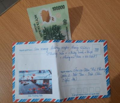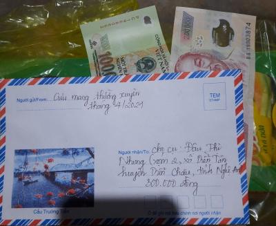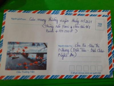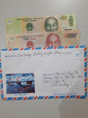Con đã nhận được 3 tháng 10, 11, 12 năm 2021, mỗi tháng 400k của chị Trieuquang gửi CMTX cho bà Nhung ạ!. Con sẽ sắp xếp đi trao sớm cho bà. Thay mặt bà, con xin cảm ơn chị Trieuquang, cảm ơn cả nhà đã quan tâm giúp đỡ bà ạ!