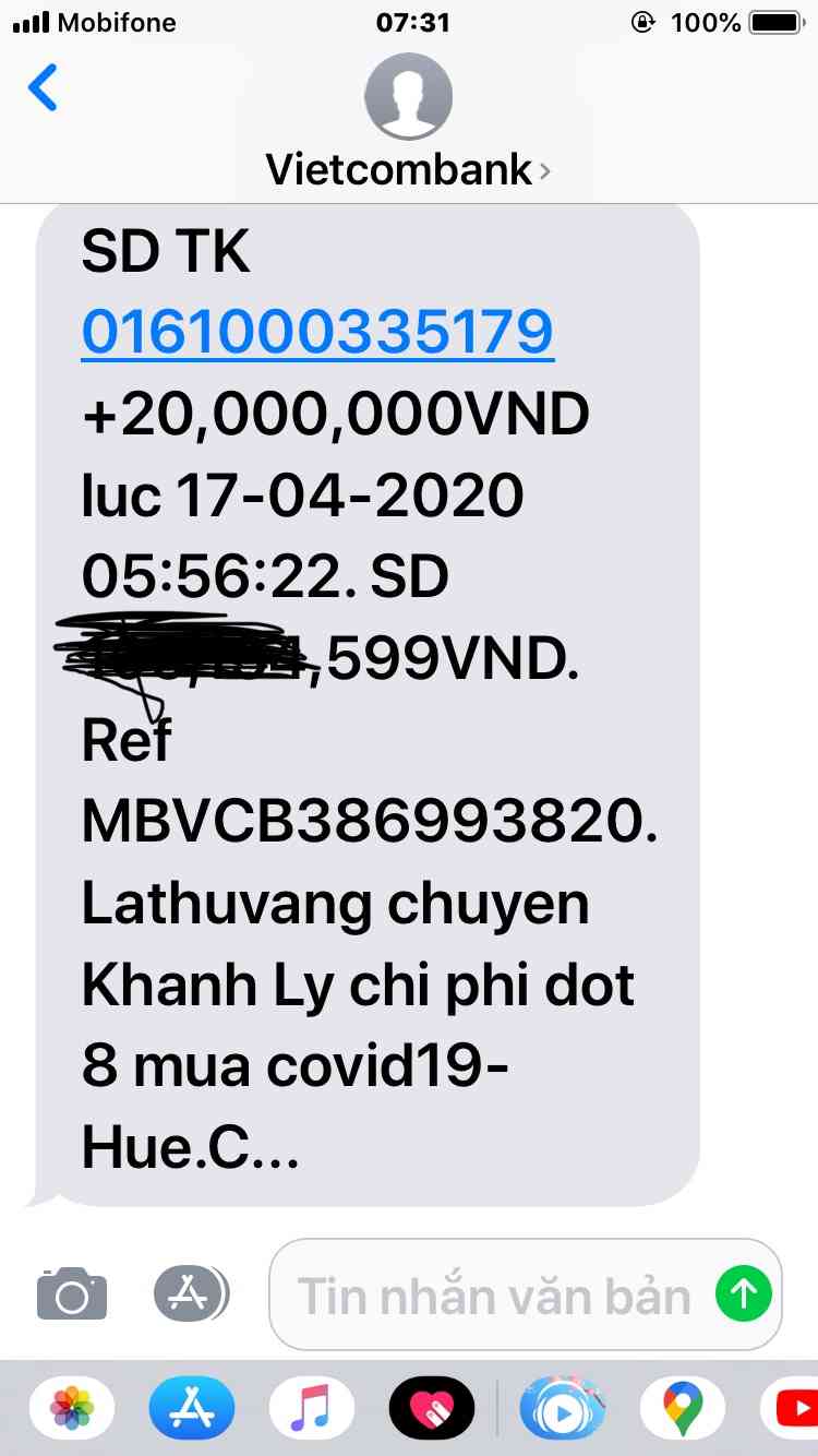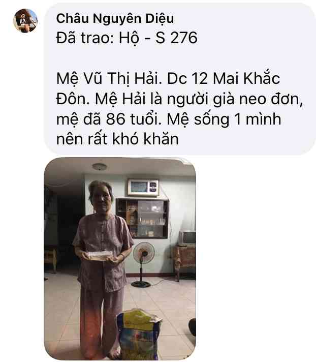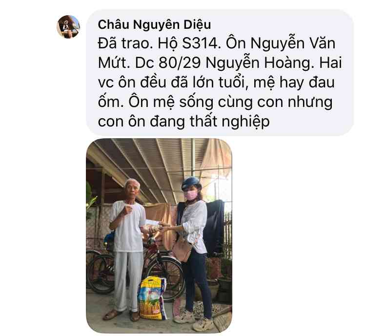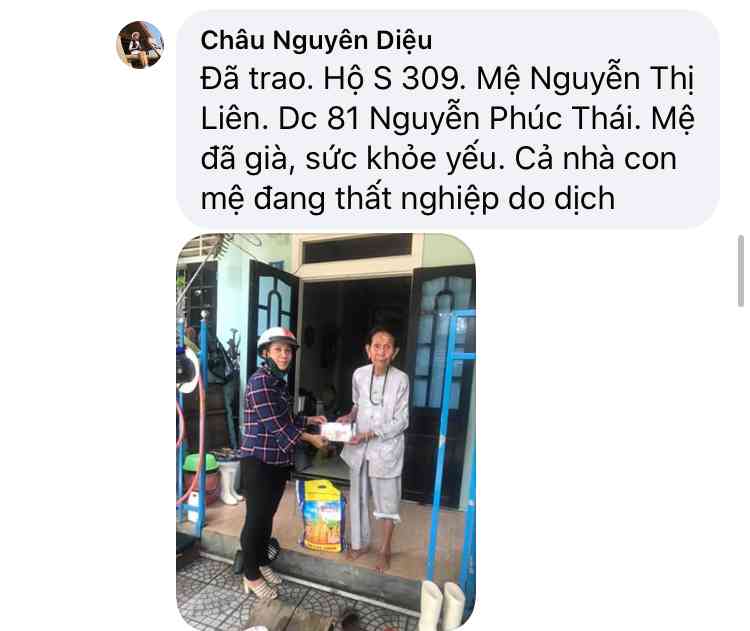 KHánh Ly đã nhận tiền Quỹ đợt 8 và 9 từ chị Lá chuyển để chạy tiếp chương trình “Những hoàn cảnh khó khăn cần giúp đỡ trong dịch COVID -19” ạ.