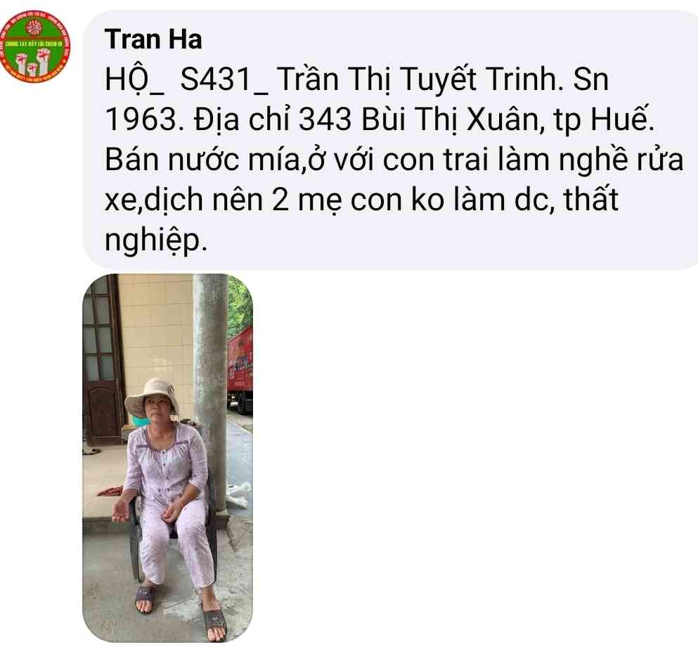 Nhóm NTCM _ Huế xin cập nhật đề xuất các hộ nhận quà.