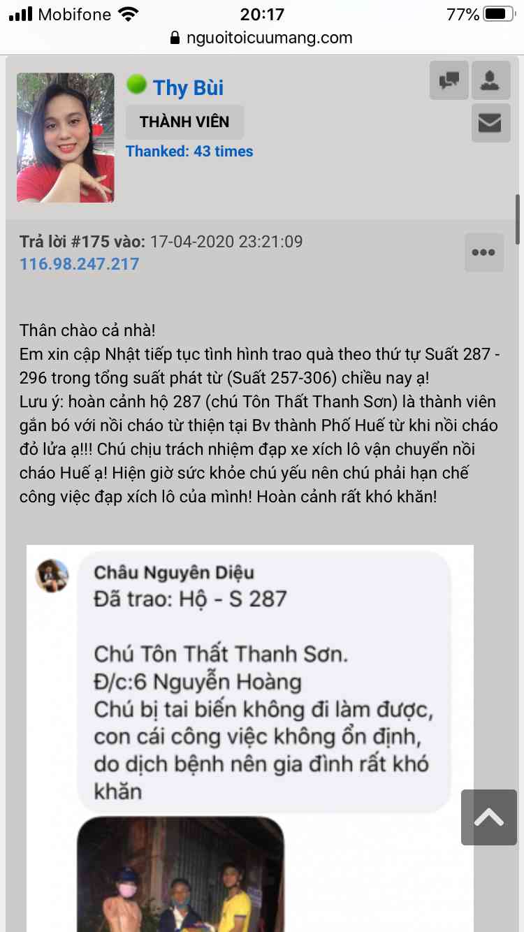Dạ nhóm Huế sẽ lưu tâm hoàn cảnh này ạ!