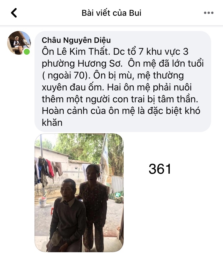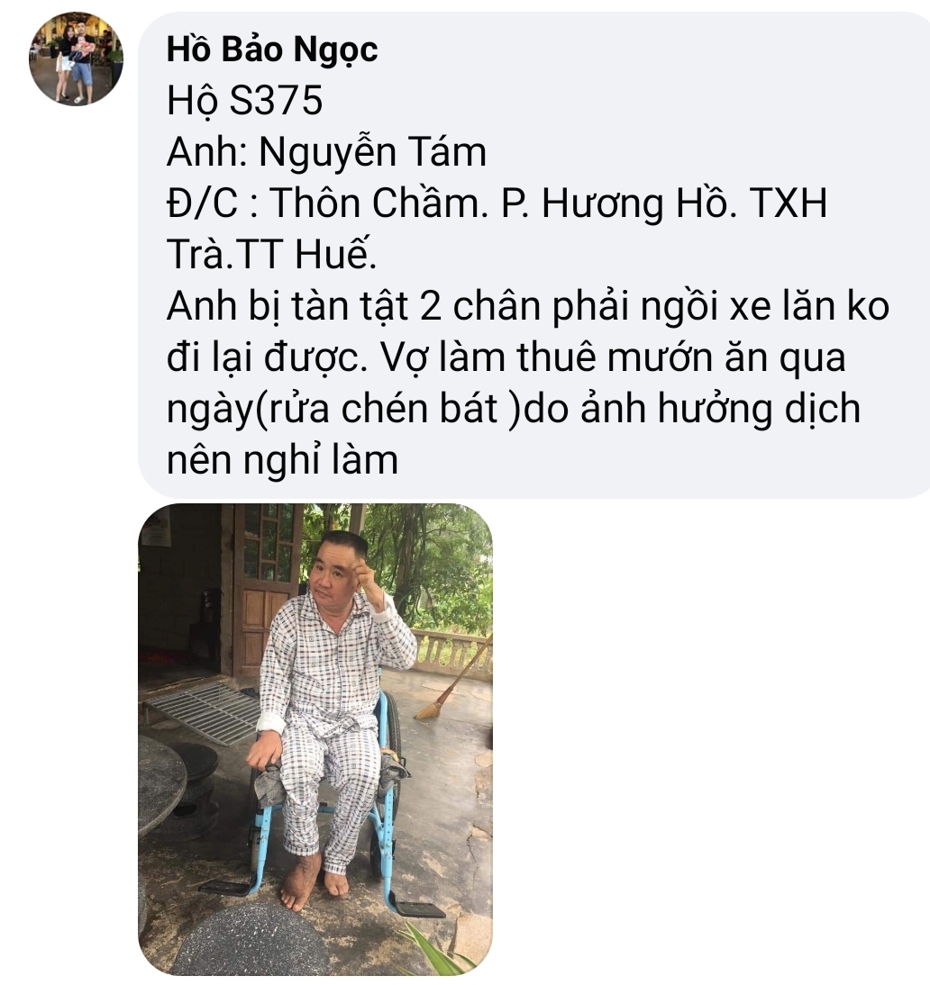 Từ khi bắt tay cùng các bạn thành viên NTCM tham gia dự án hỗ trợ người dân Huế mùa dịch Covid, đi khảo sát sâu sát từng nhà, từng hộ dân, chụp từng tấm ảnh và hiểu hơn về hoàn cảnh của từng gia đình đang khó khăn trong mùa Covid bản thân e và các bạn tình nguyện tại Huế ai cũng buồn và thậm chí ám ảnh bởi những Hoàn cảnh quá khổ và quá bi đát!