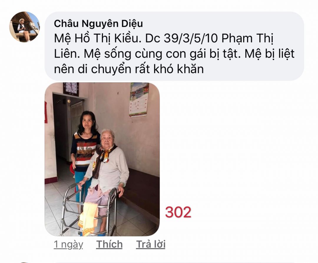 Khi trao quà, nhờ các bạn cập Nhật tình hình hiện tại mẹ con dì.