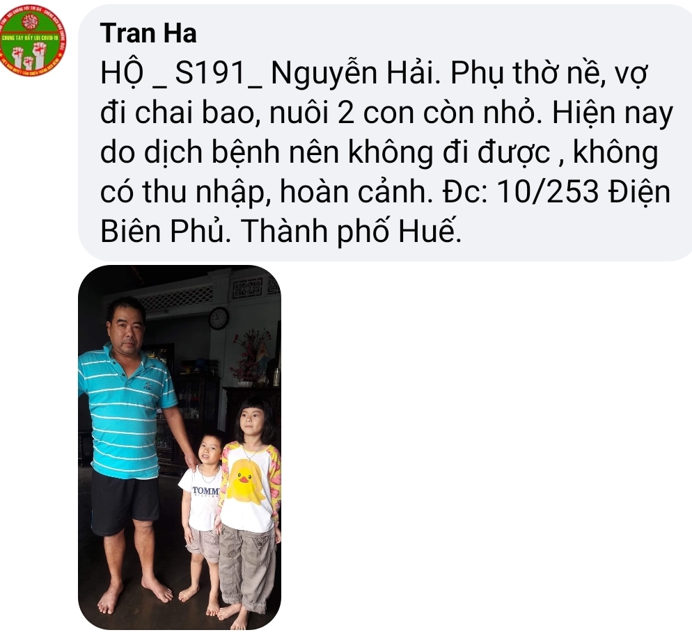 Tác giả Chủ đề: Huế - Những hoàn cảnh khó khăn cần giúp đỡ trong dịch COVID-19  (Đã xem 69867 lần)