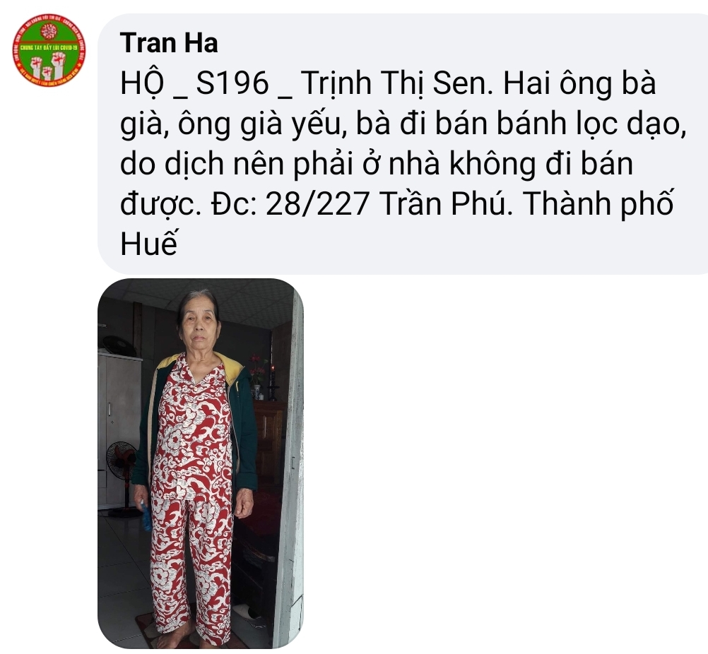 Huế quê em, nghèo rất nghèo quanh năm mưa dầm ‘Thúi ‘đất, nắng cháy kho da! Người dân đa phần sống bằng nghề lao động vất vả,! Vài năm trở lại đây dân Huế đỡ khổ hơn chút nhờ du lịch Huế phát triển, Người Huế có thêm chút công việc mưu sinh, tưởng chừng cuộc sống chăm chỉ làm ăn sẽ thay đổi được cuộc sống ai ngờ dịch bệnh ập đến, bà con thất nghiệp, nhà nhà thiếu ăn!