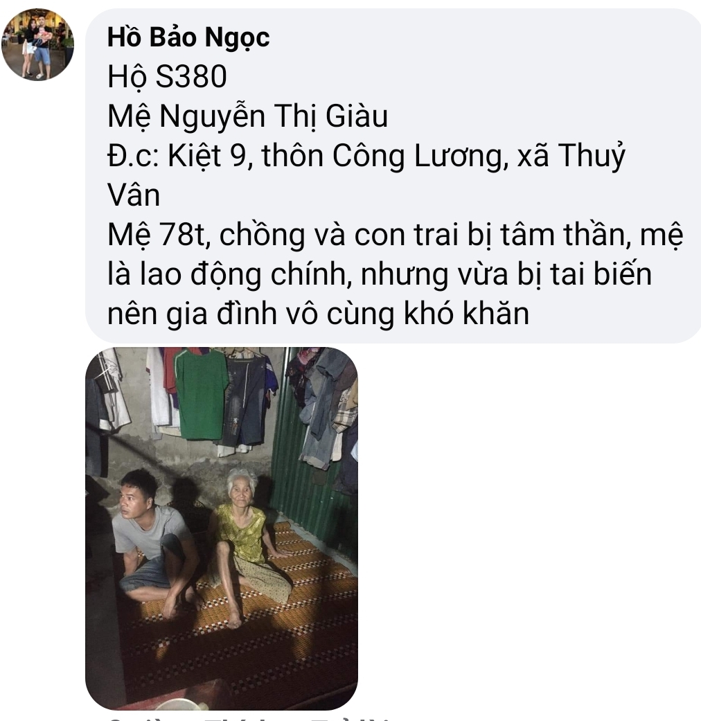 P/s : Các bạn vui lòng xem qua khu vực Huế, trong nhà chúng ta khăn khó chồng chất, mà do thiếu nhân lực nên đứt đoạn thông tin kết nối giúp đỡ.