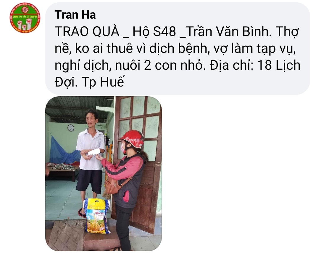Nhờ sự nhiệt tình và lăn xả của các bạn mà nhiều hoàn cảnh khó khăn tại Huế được hỗ trợ để vượt qua giai đoạn khó khăn vì dịch COVID -19 lần này.