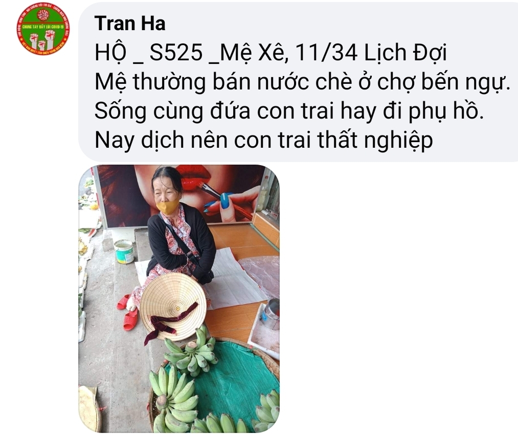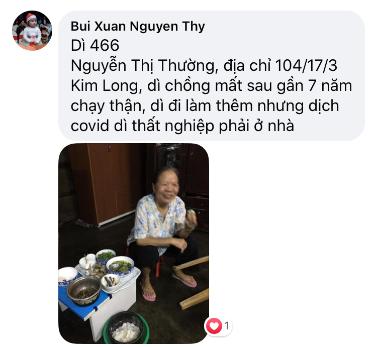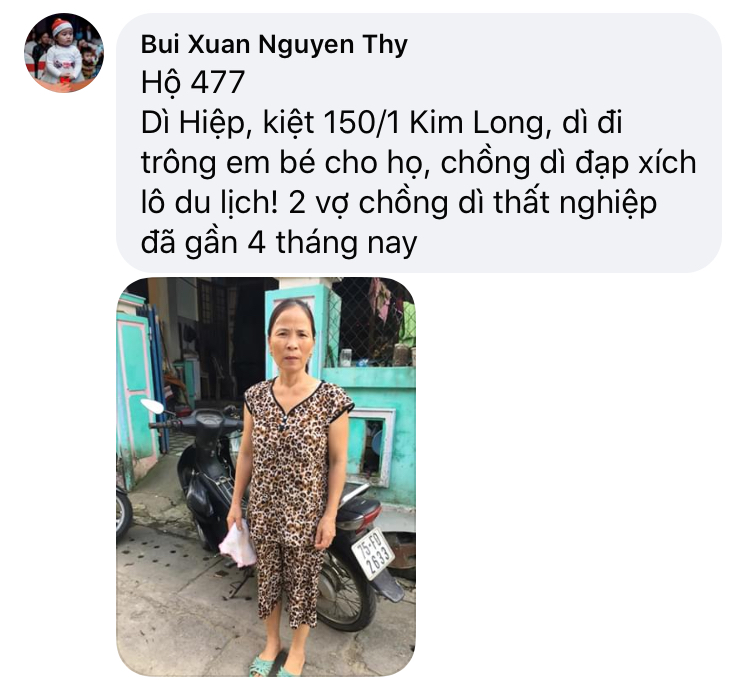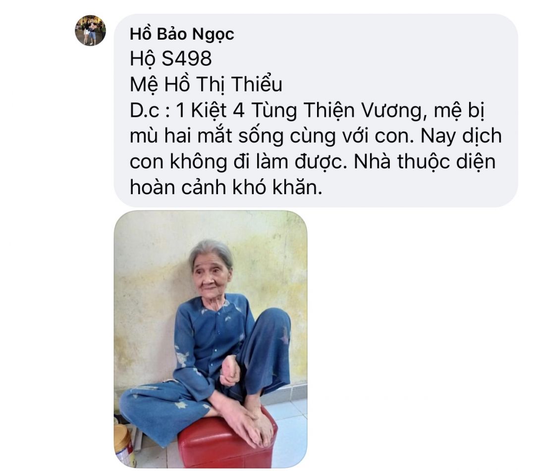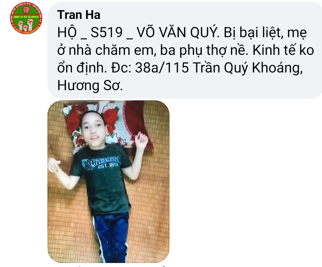 Có một hoàn cảnh, mấy năm nay điều đặn ra nhận cháo về ăn, Chờ phát cho bệnh nhận xong mới nhận. Còn nhiều lấy nhiều còn ít lấy ít. Rất hiền và tội; mình không biết chú ở đâu, tình trạng khổ. Nếu các bạn kết nối được thì quá tốt. Xin cảm ơn.