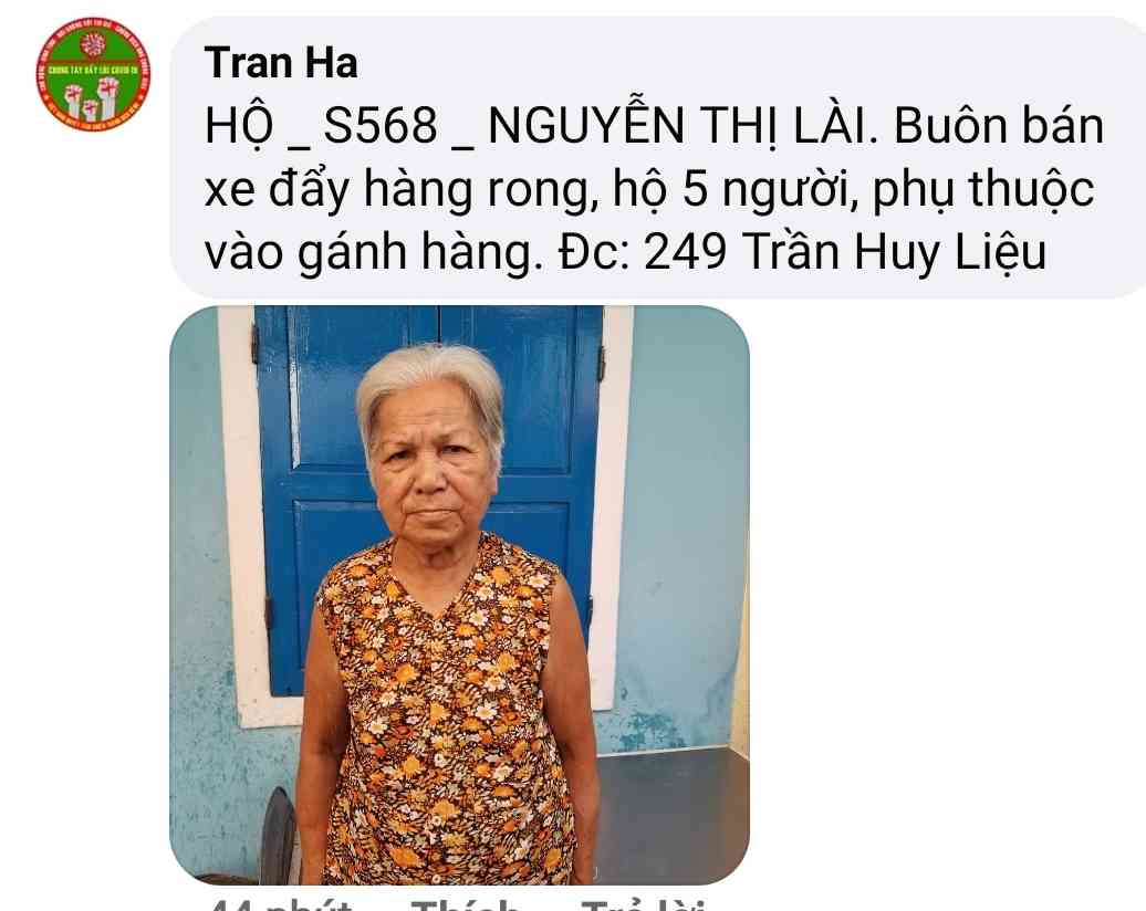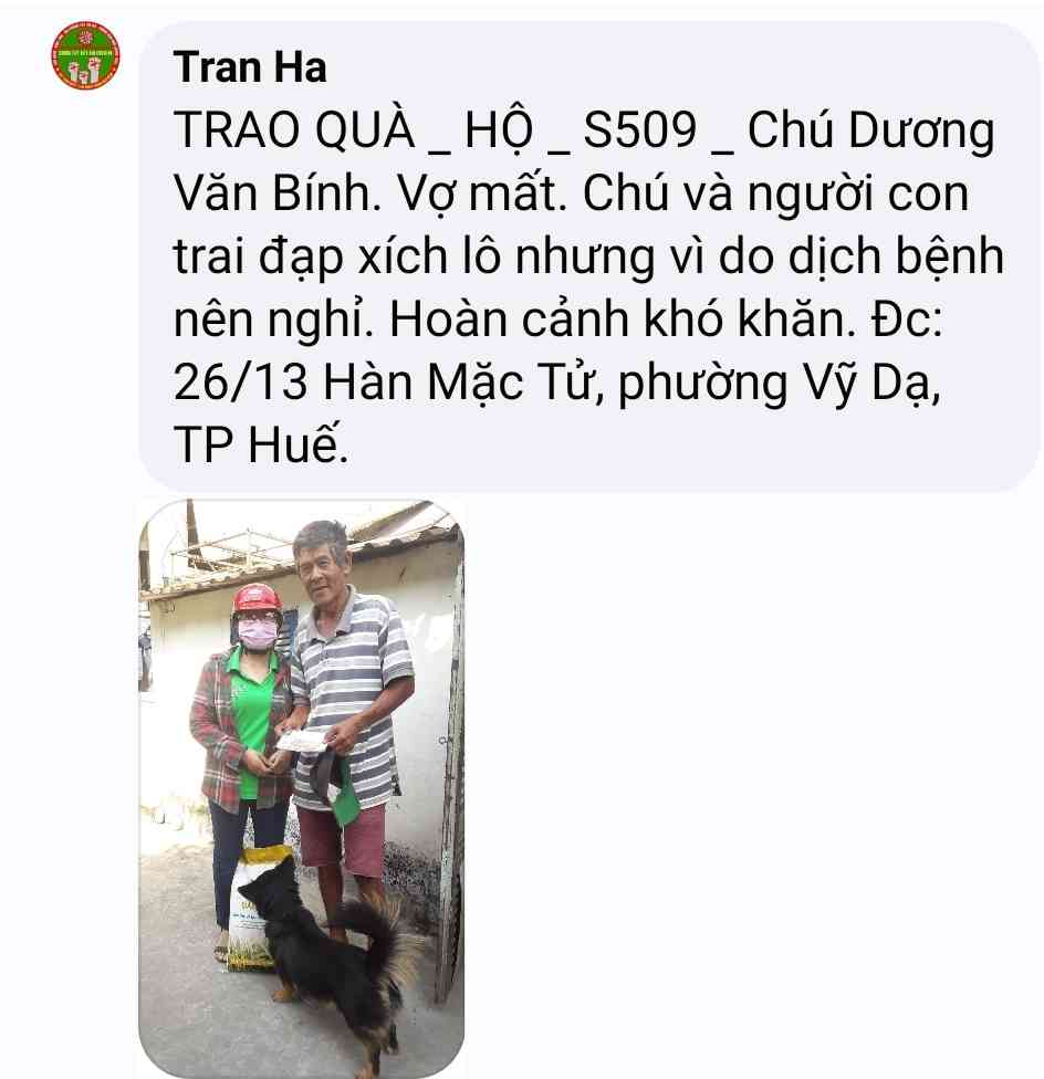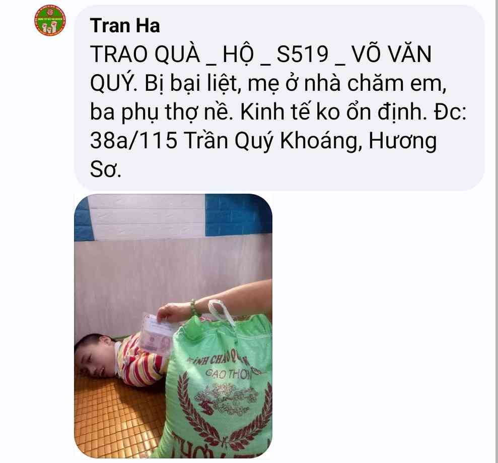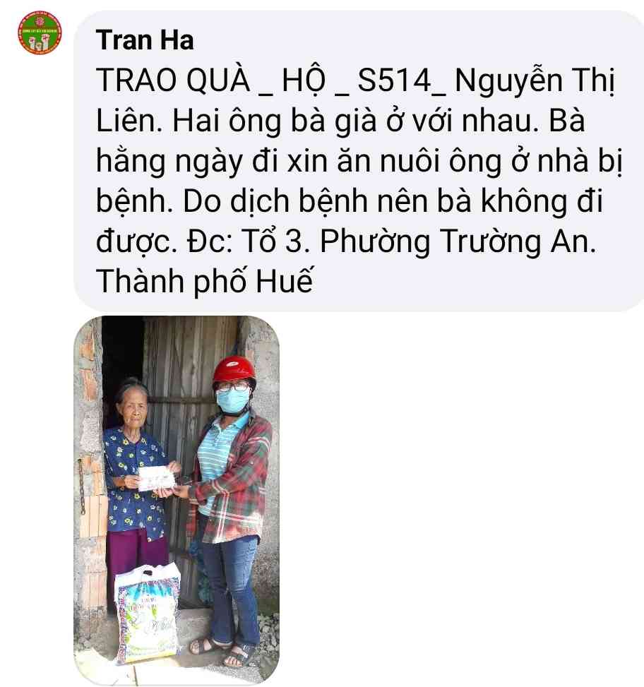 Cảm ơn Tran Ha đã thực hiện chương trình giúp đỡ các hoàn cảnh khó khăn trong mùa dịch  và kêu gọi ủng hộ .