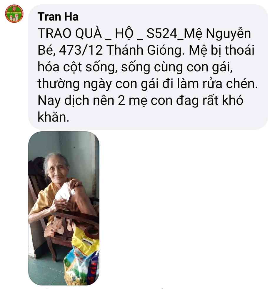 Cảm ơn Tran Ha đã thực hiện chương trình giúp đỡ các hoàn cảnh khó khăn trong mùa dịch  và kêu gọi ủng hộ .