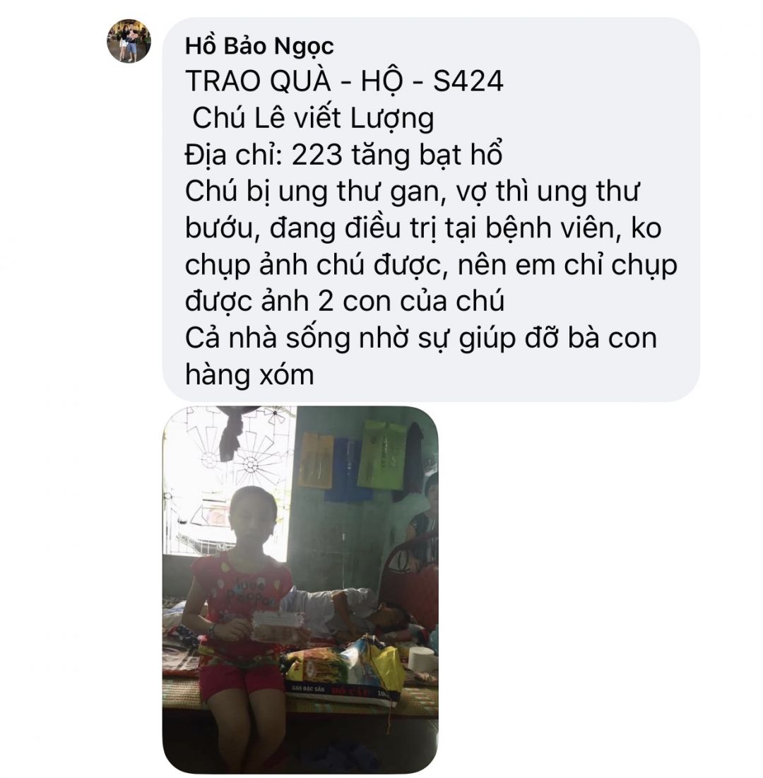 E xin cập nhật những trường hợp đã được trao quà ngày 19/4