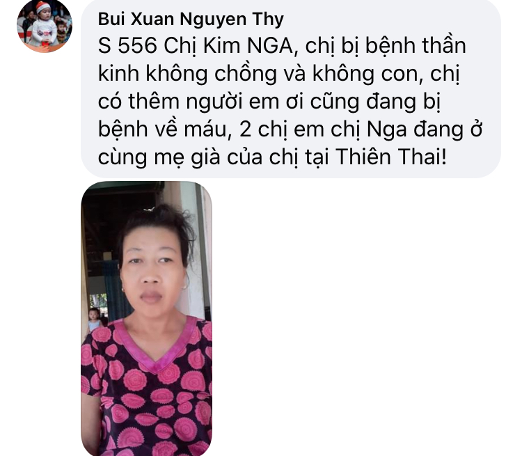 Nhờ các bạn tách riêng ra một bài viết mới tại chuyên mục : Hoàn cảnh chờ xác minh ( https://nguoitoicuumang.com/index.php?board=17.0 ) để chúng ta có thể giúp thêm và đó thuộc về một chương trình khác của NTCM nha.