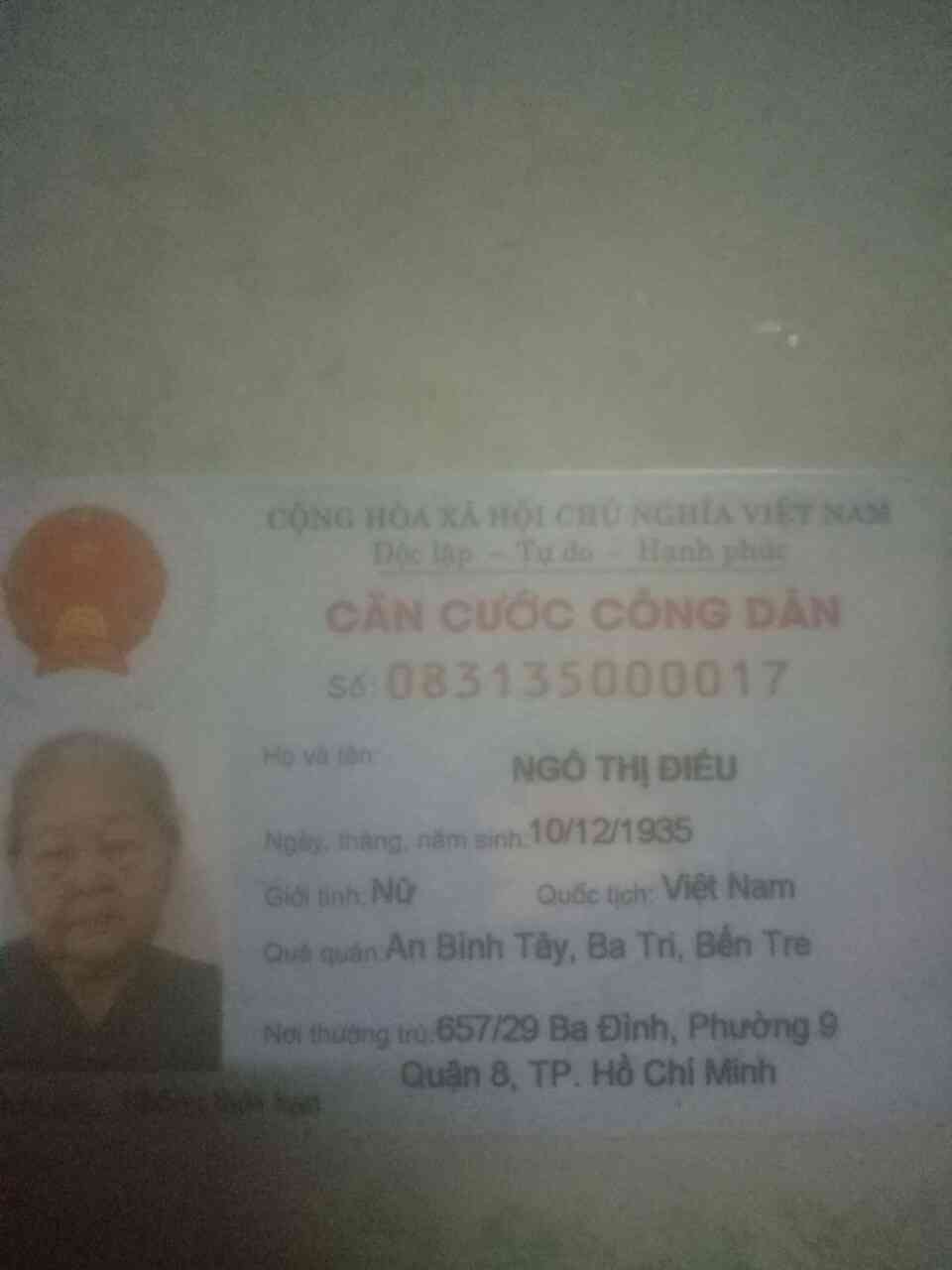 Là bà cụ Ngô Thị Điểu, bà 86 tuổi. Hiện bà đang bị tai biến hơn một năm nay bà đang sống trong phòng trọ và ở một mình không ai là người thân cả, hiện bà sống nhờ tình thương của mọi người xung quanh và nhờ sự chăm sóc của chị bán tạp hóa kế bên mỗi ngày qua vệ sinh, giặt giũ cho bà,hôm nay mình vô tình biết được thông tin và tới thăm bà nhìn bà rất tội nghiệp khi phải sống giữa lòng thành phố không có ai là người thân mà bản thân lại bị tai biến không thể tự chăm sóc bản thân mình được. Khi mình viết lên đây mong diễn đàn giúp đỡ cho bà,mình xin cảm ơn ạ.
