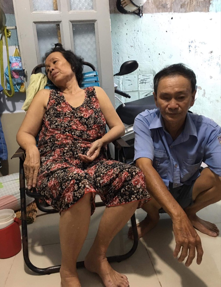 Ông ngày trước  bán vé số bị xe đụng gãy chân, người đụng bỏ chạy mất,  ông nằm nhà hơn 4 tháng,vợ cũng bán vé số ở trước cổng chùa Quan Âm, 1 người con bị bệnh down và 1 cháu gái nhỏ.
