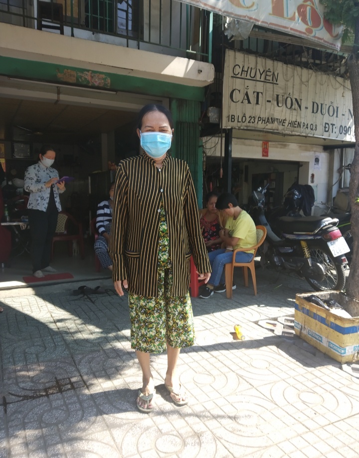 Cô ở một mình, có người con gái đi làm công nhân, vài tháng mới về một lần. Hằng ngày cô ra chợ coi có ai nhờ làm gì thì làm phụ để tiền ăn cơm,một ngôi chợ nhỏ nằm cuối đường bến bình đông, dịch này lại vắng hơn nên cô không có được việc gì để làm.