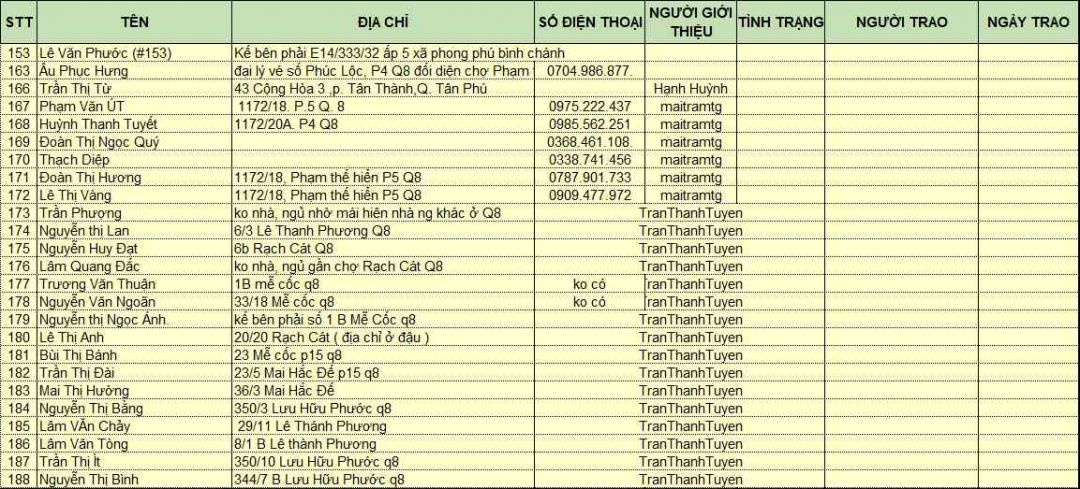 ** Bảng phụ màu vàng là 25 trường hợp chưa được trao quà