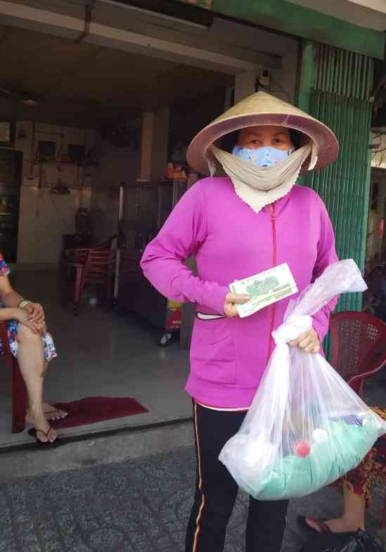 Hình ảnh chị Chân nhận quà cộng với 200k xin gửi đến cả nhà cùng nắm được.