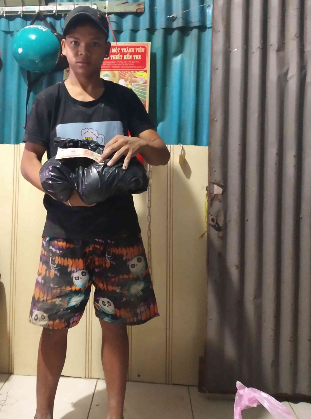 Hình ảnh con trai chị Thông nhận quà giúp Mẹ cộng với 200k