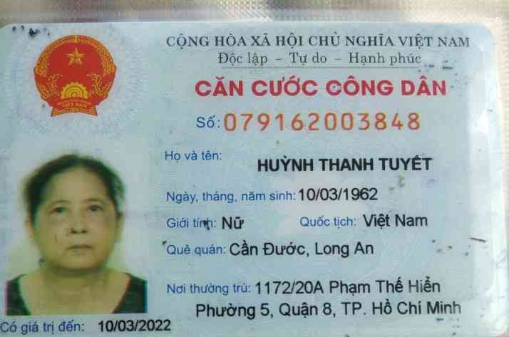 Huỳnh Thanh Tuyết sinh 1962 chồng chết 32 năm đang ở nhà trọ địa chỉ 1172/20A. Phường 4 Quận 8. Số điện thoại liên lạc với cô 80985562251.