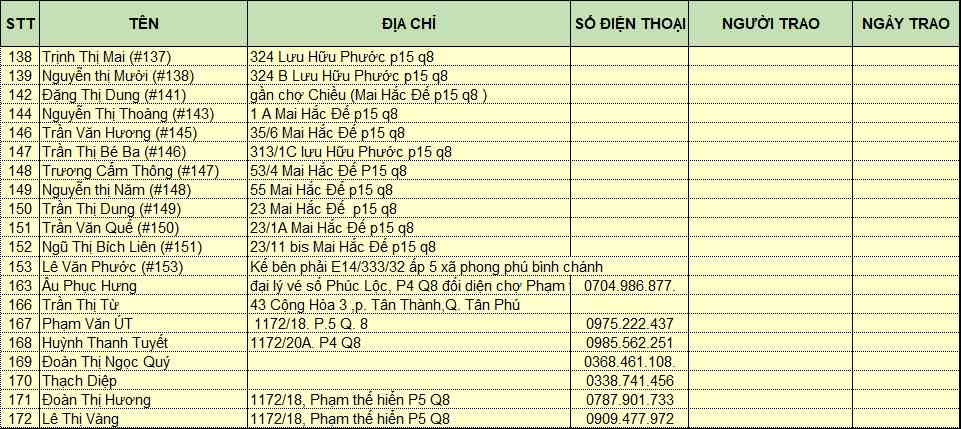 Hôm nay Mai Trâm đã trao quà đến 5 hoàn cảnh từ 159 đến 164.