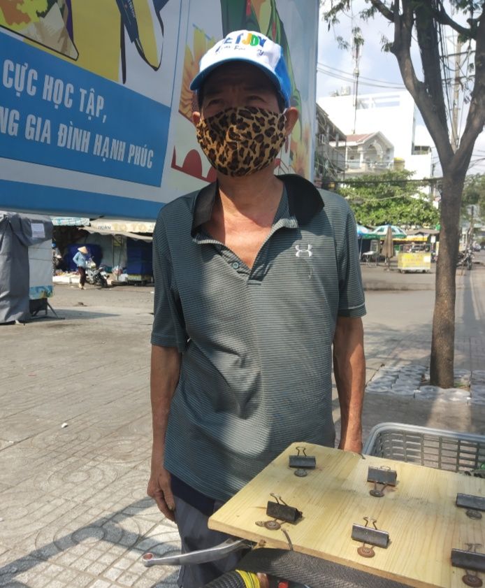 Bình thường công việc của chú là đẩy xe ve chai đi lụm, từ hồi cô bị dụng xe thì không thể đi bán vé số được.